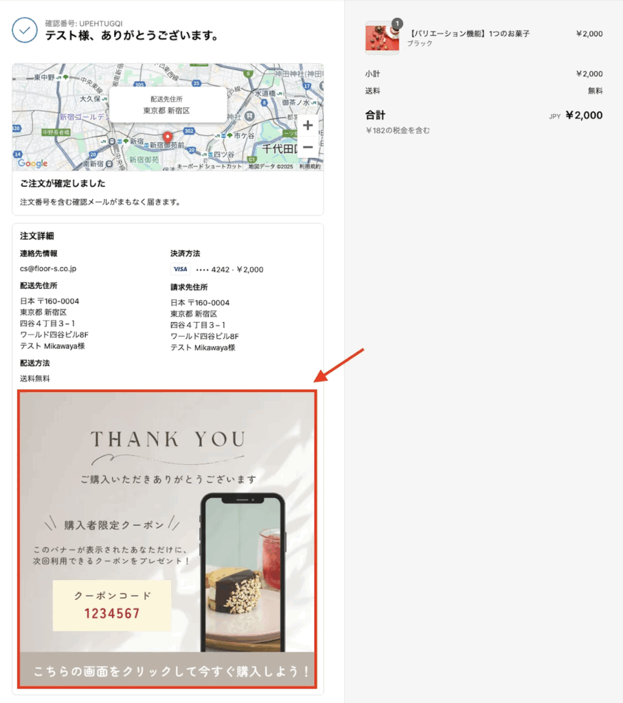 サンクスページのアップセルとしてポップアップを表示させることもできます。