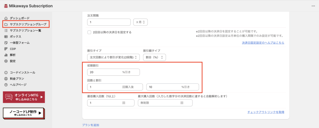 ①ShopifyサブスクアプリMikawayaの「2段階割引機能」の設定