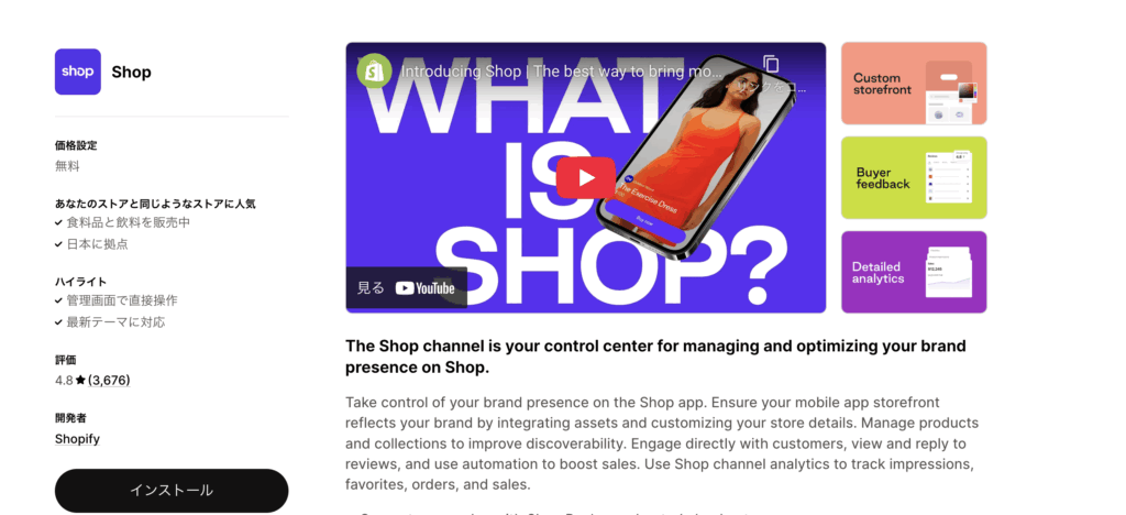 Shopify公式アプリとは、Shopify社が自社開発した無料アプリのことです。
