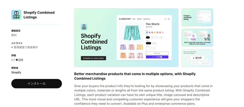 Shopify Combined Listingsアプリは、PlusプランおよびEnterprise commerceプランのストアのみご利用いただけます。