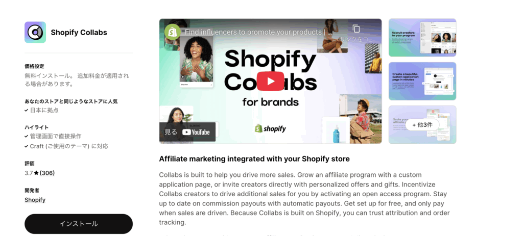 Shopify Collabsは、Shopifyストアと統合されたアフィリエイトマーケティングプラットフォームで、売上拡大をサポートします。