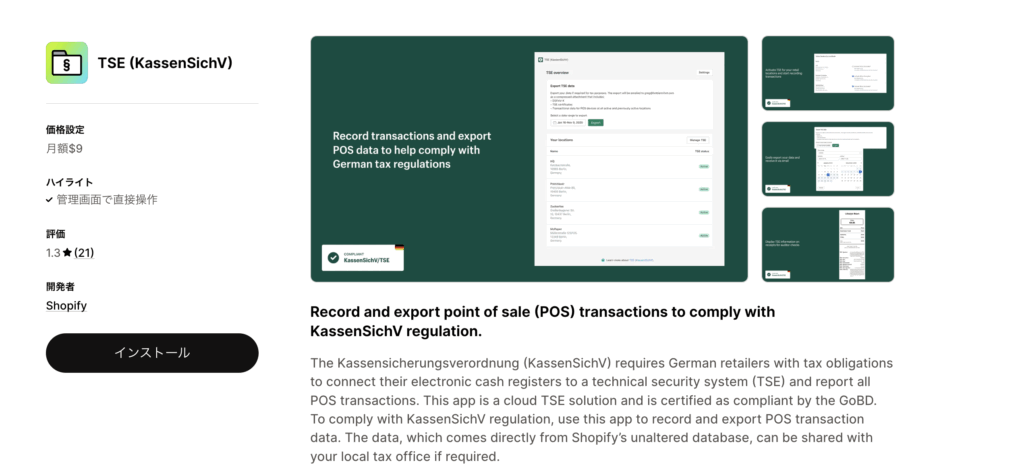 Shopify POS用KassenSichV対応アプリは、ドイツの税法に基づきPOS取引を記録・エクスポートできるクラウドTSEソリューションです。