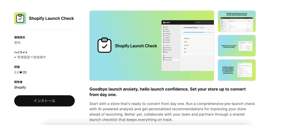 Shopify Launch Checkは、AIによる分析でストアの事前チェックを行い、ローンチ前に改善点を明確にできるアプリです。